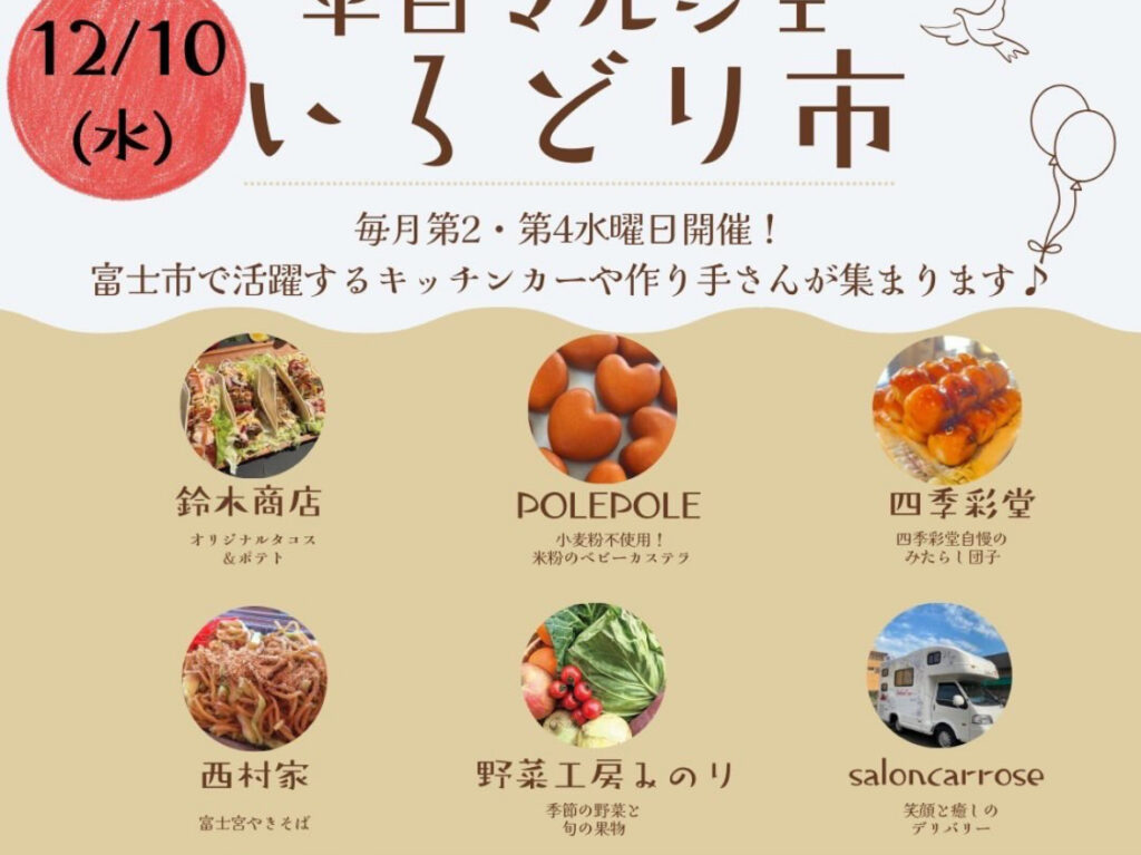 富士山のふもとである富士、富士宮や県内外から56組の出店者が集結します。