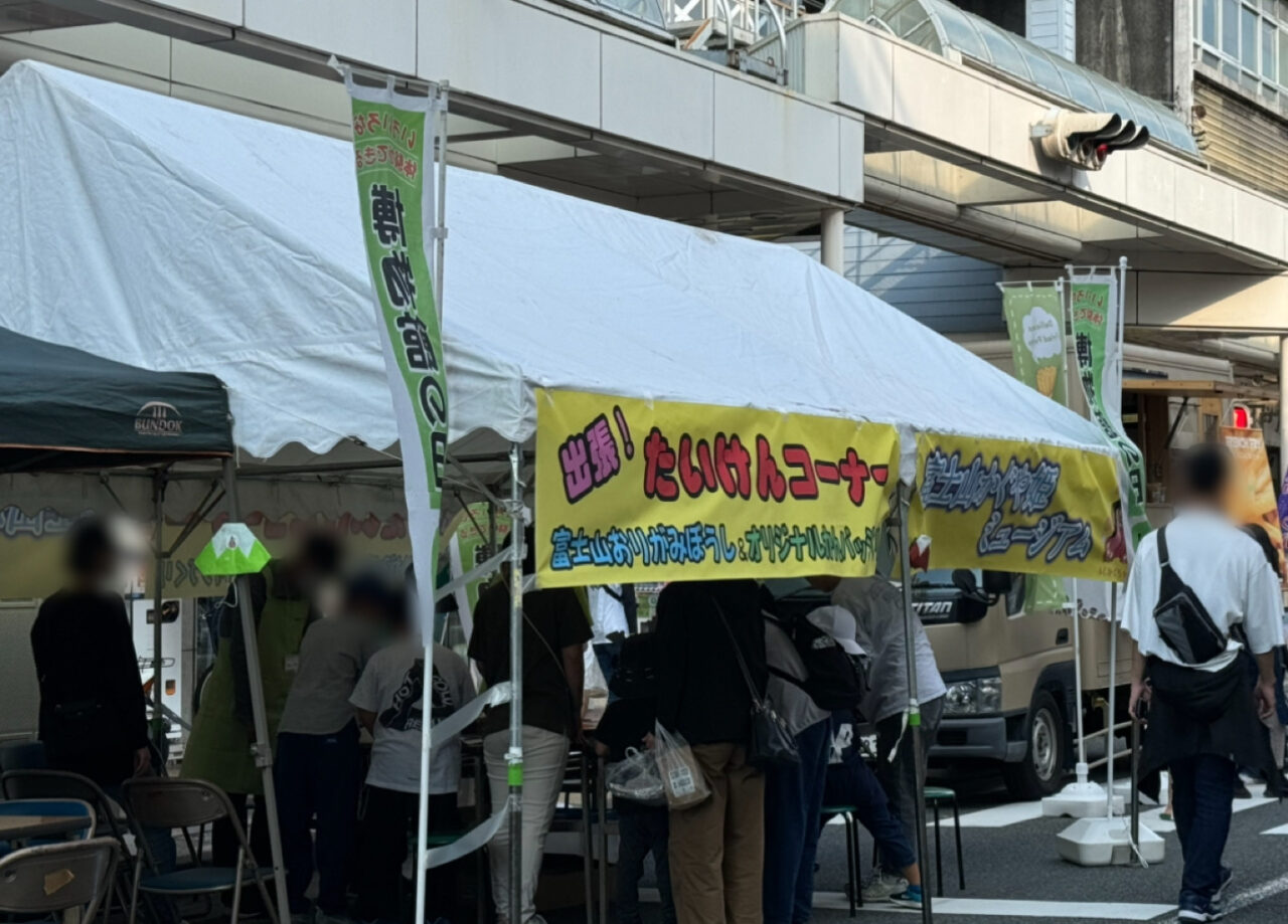 「富士山かぐや姫ミュージアム」からの出張!体験コーナーでは富士山の折り紙帽子や缶バッジを作ることができます。