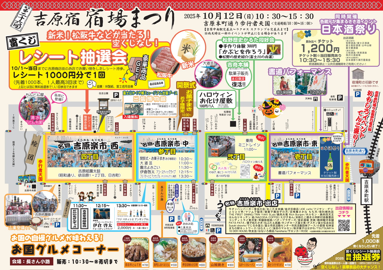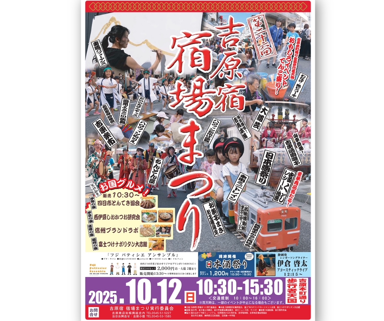 2025年10月12日(日)10時30分~15時30分「第26回 吉原宿 宿場まつり」が開催されます。吉原本町通りは歩行者天国になります。