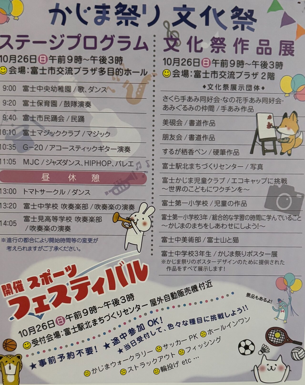 【富士市】10月26日は富士駅前周辺で「エキキタテラス」・「かじま祭り」が開催されます!