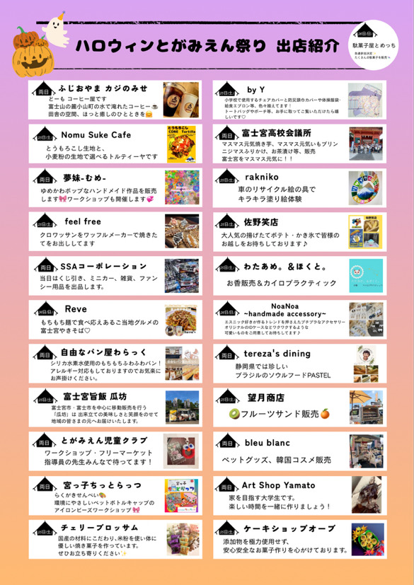 【富士宮市】10月25日(土)・26日(日)は「ハロウィンとがみえんまつり」が「外神苑にしはら」にて開催されます!