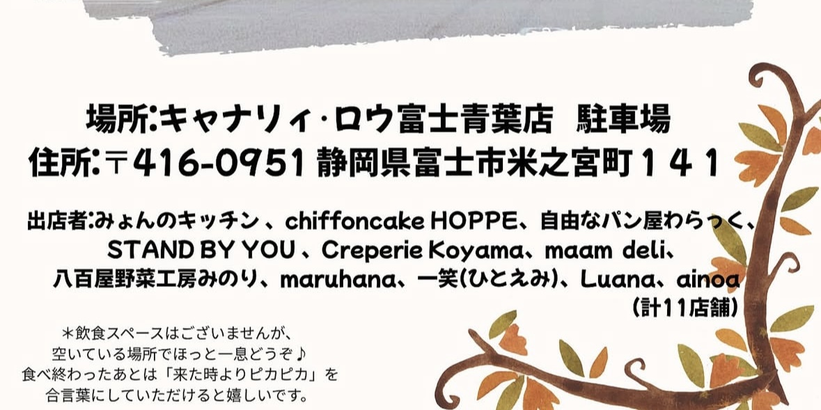【富士市】11月11日(火)新しいマルシェが始動!「しあわせガーデン~キャナリィ・ロウ~」