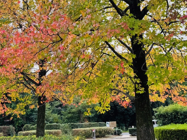 マルシェに立ち寄って、米之宮公園でランチやお散歩はいかがでしょうか?「キャナリィ・ロウ」と隣接する駐車場のかえでなど紅葉が進んでいます。