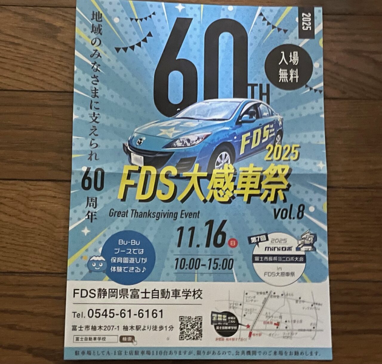 2025年11月16日(日)10:00~15:00「FDS静岡県富士自動車学校」にて「FDS大感車祭vol.8」が開催されます。