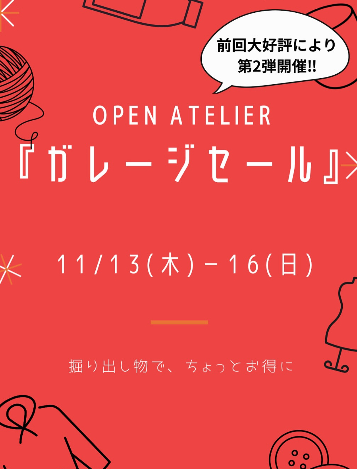 「OPEN ATELIER ガレージセール」11月13日(木)~16日(日)会場:カフェ1518