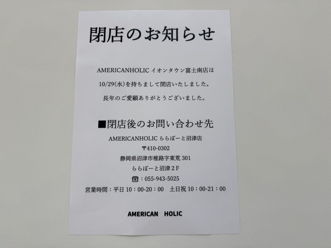 「AMERICANHOLICららぽーと沼津店」をご利用ください。