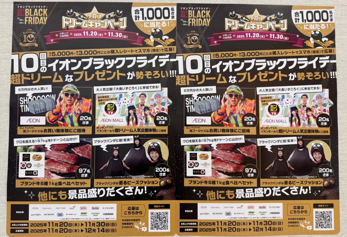2025年11月30日まで年に1度の「イオンブラックフライデー」が開催中です。