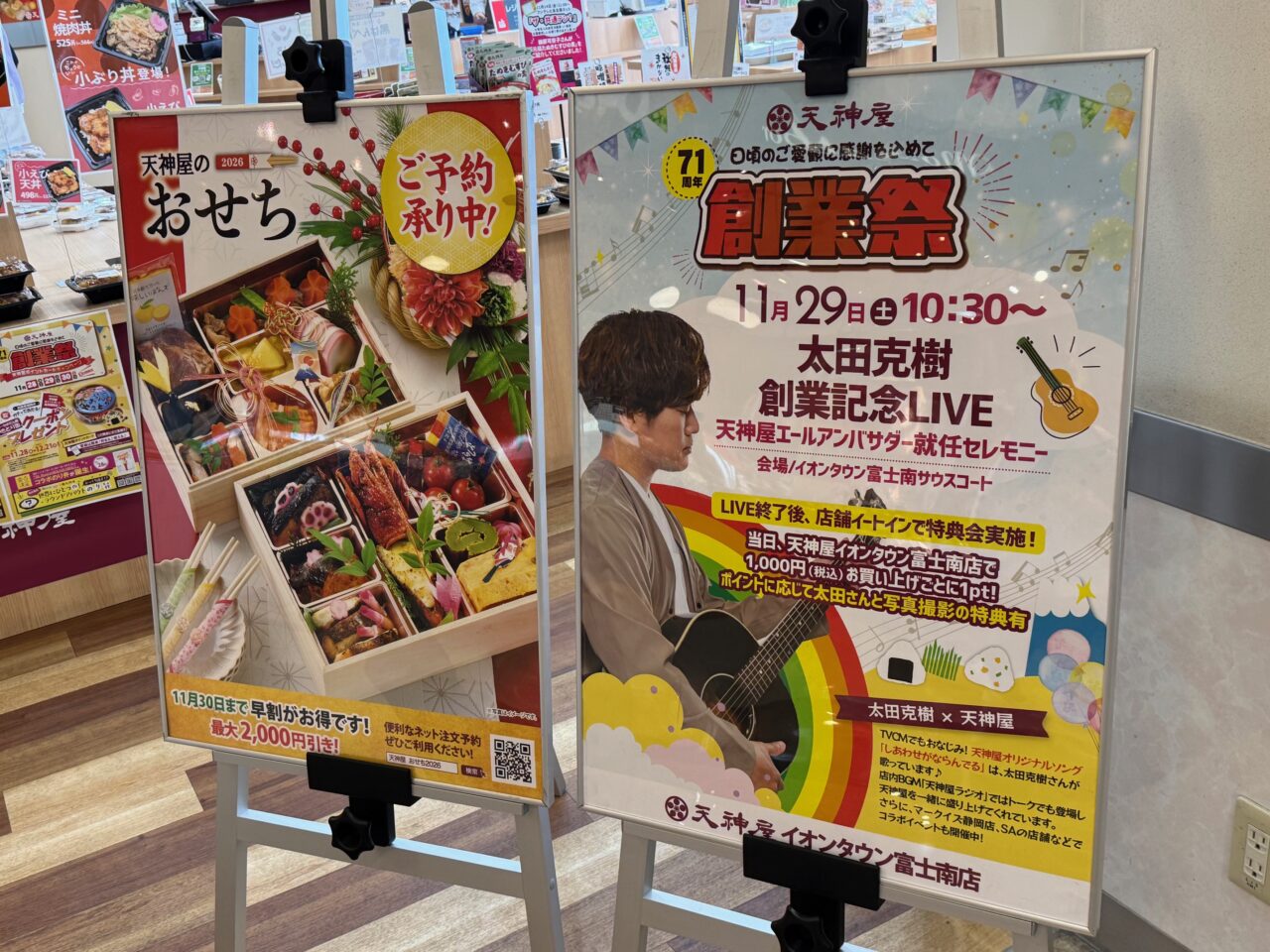 当日「天神屋イオンタウン富士南店」で1,000円(税込)お買い上げごとに1pt!
