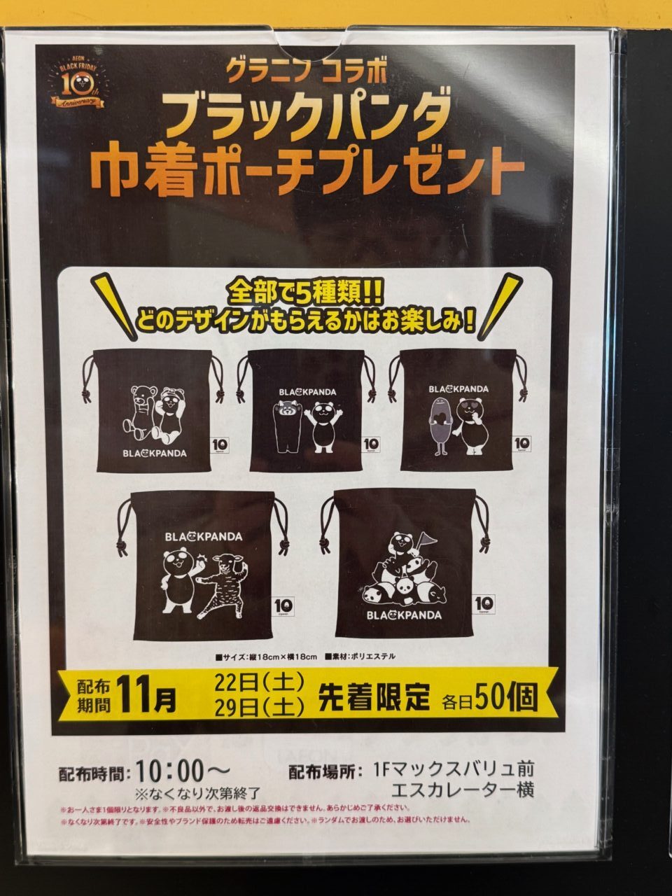 グラニフとブラックパンダがコラボレーションした巾着ポーチをご来店いただいたお客様へ先着プレゼント!
