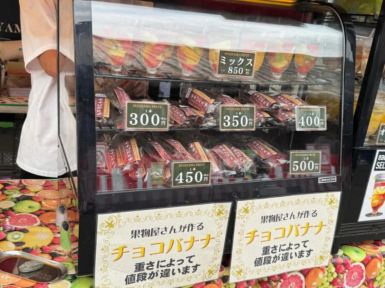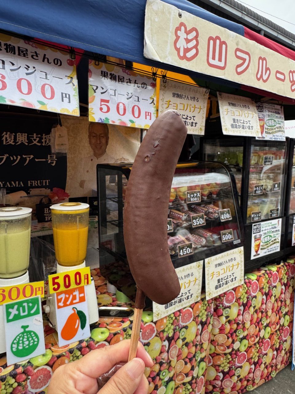 果物屋さんが「チョコバナナ」を作って販売していることは珍しく貴重だと思われます。