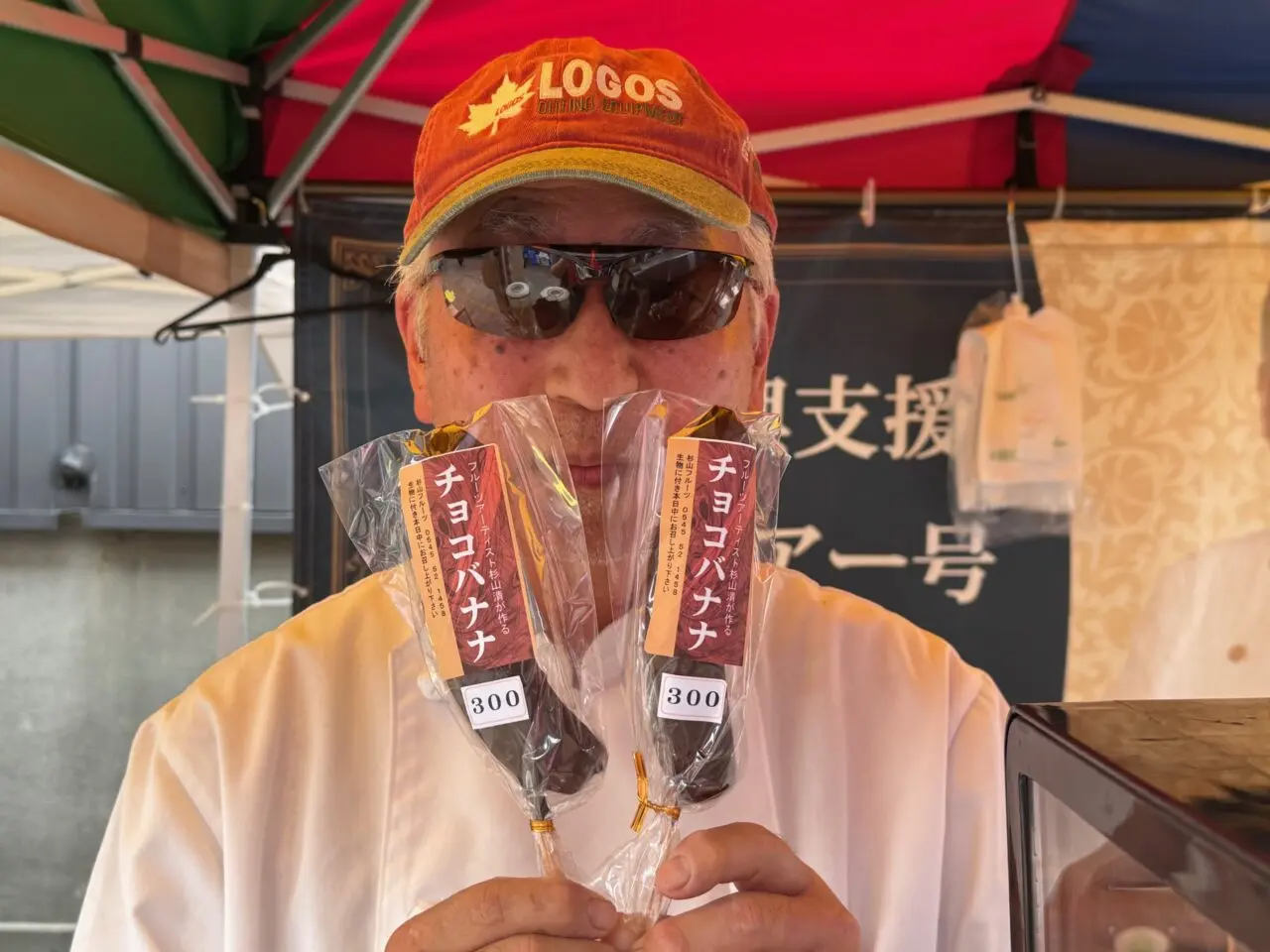 杉山フルーツの「チョコバナナ」は、フルーツアーティストの杉山清社長が厳選したバナナとチョコを選んで販売しています。