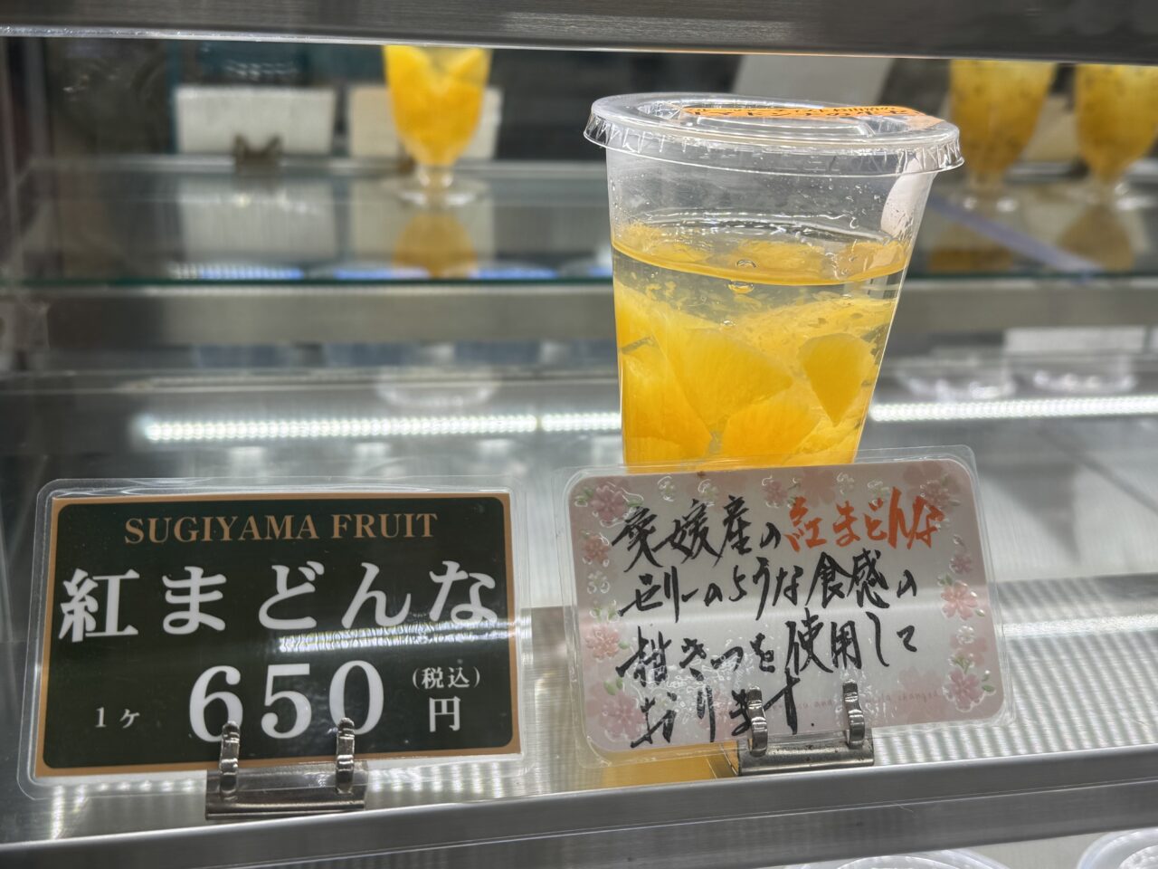 現在、旬となる期間限定「生フルーツゼリー」は「いちご(紅ほっぺ)」と「紅まどんな」だそうです。