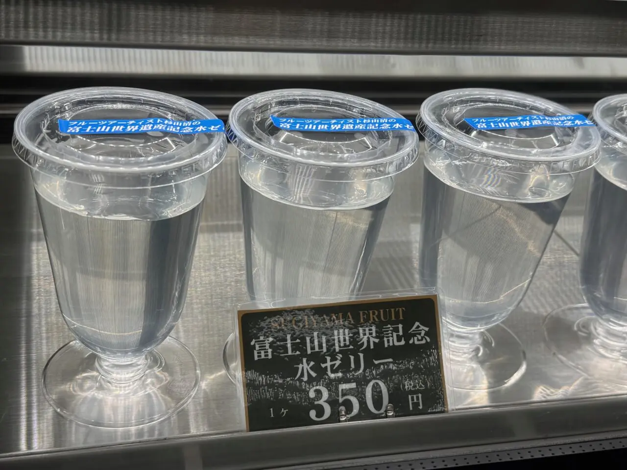 一番人気はいろんな種類のフルーツが入った「ミックスゼリー」です。富士山世界遺産を記念した「水ゼリー」も人気です。