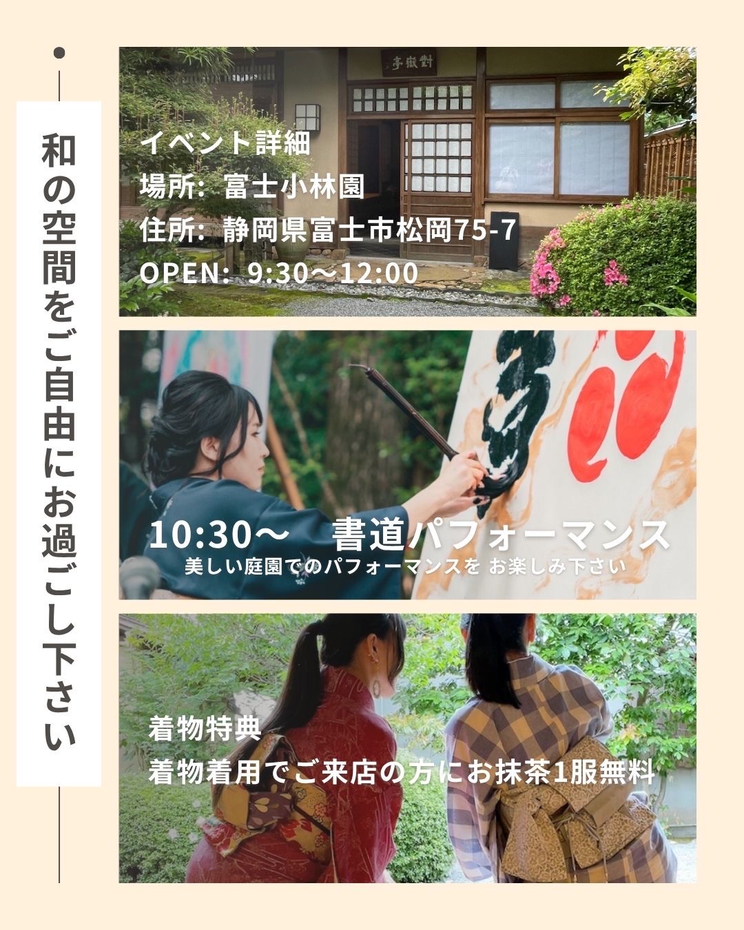 「小林園」のステキな空間で和空間で書と着物とお茶を楽しみませんか。