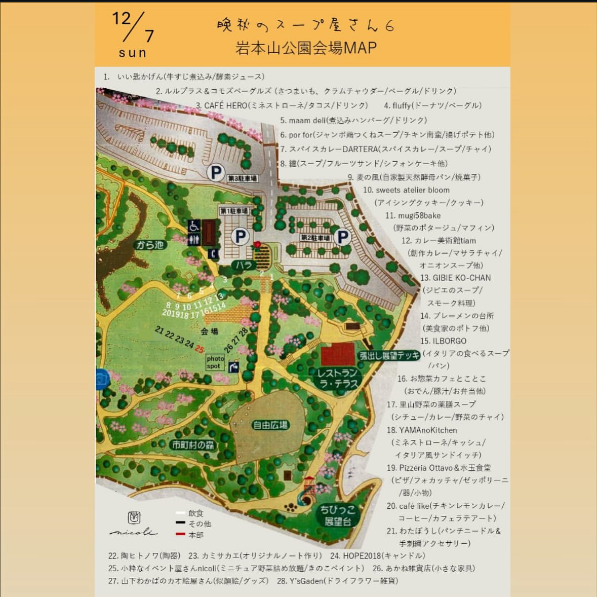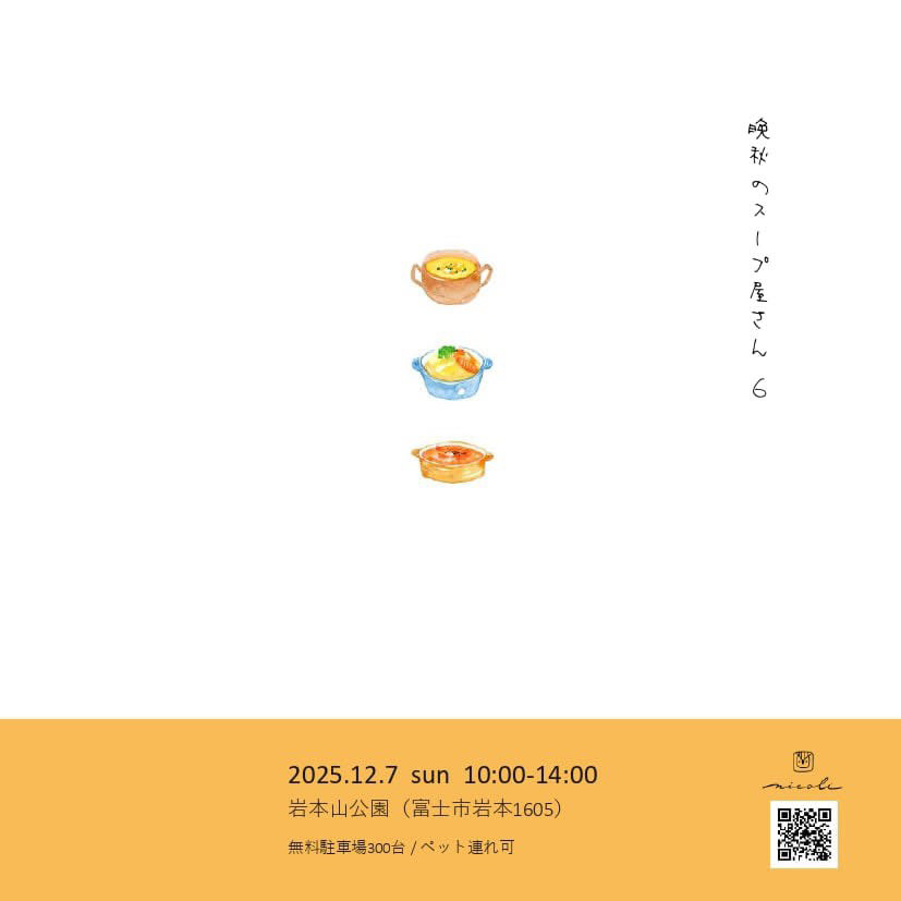 2025年12月7日(日)10:00~14:00「晩秋のスープ屋さん6」が岩本山公園にて開催されます。