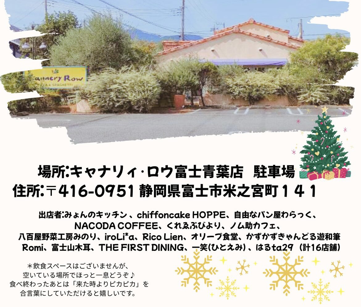 【富士市】12月9日(火)は平日マルシェ「しあわせガーデン~キャナリー・ロウ」が開催されます!