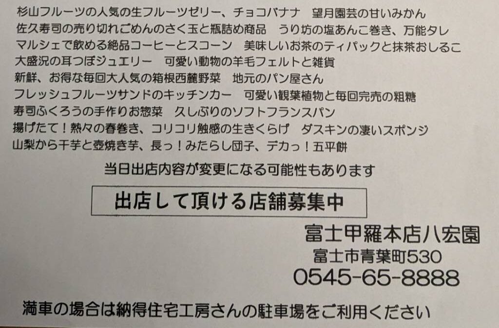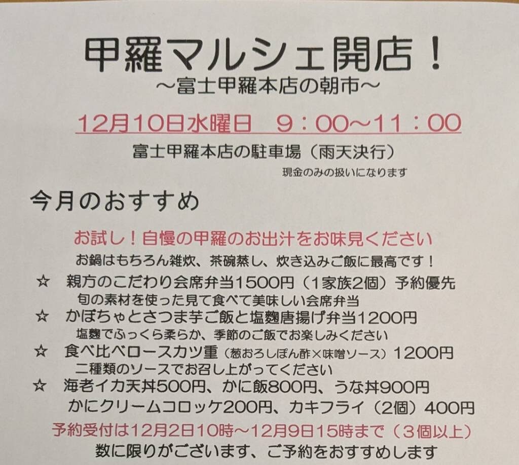 【富士市】12月10日は月一開催、甲羅の朝市「甲羅マルシェ」が開催されます!