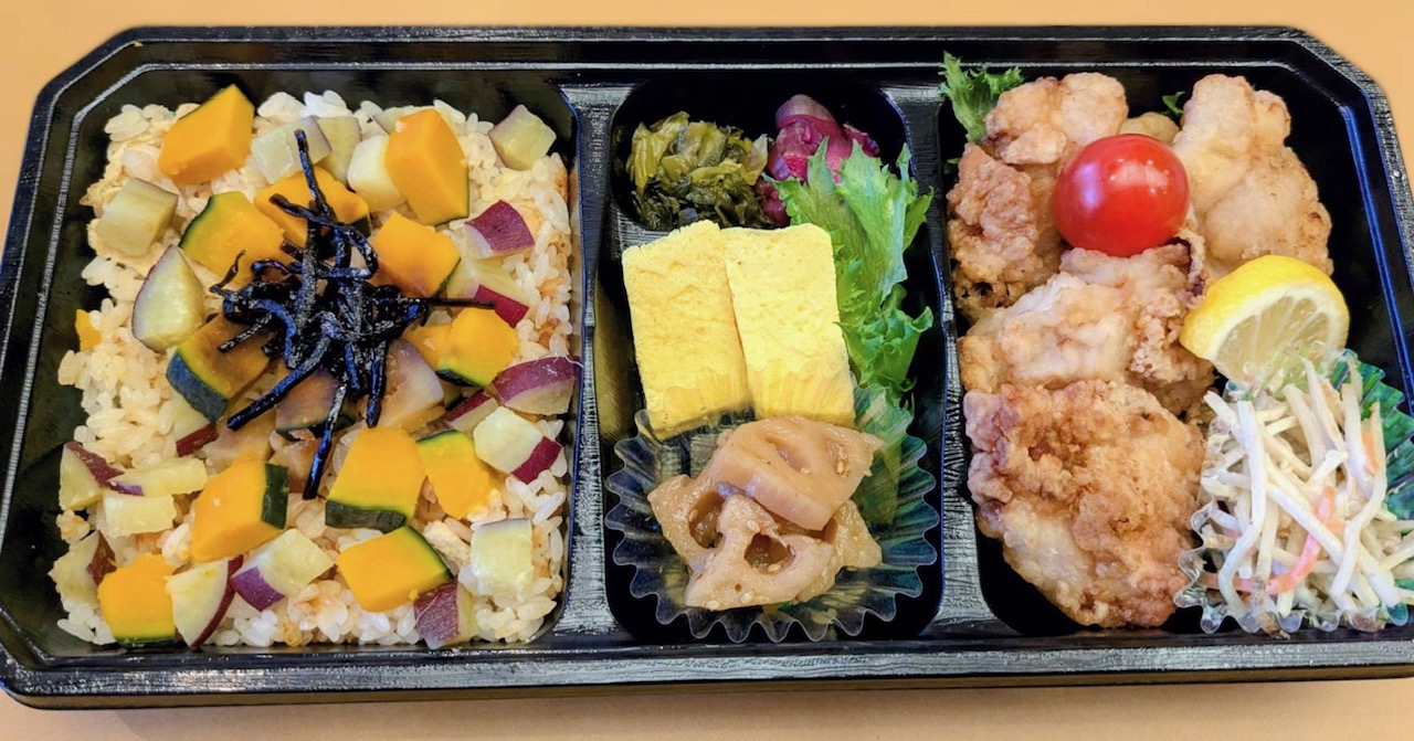 「かぼちゃとさつま芋ご飯と塩麹唐揚げ弁当」1,200円