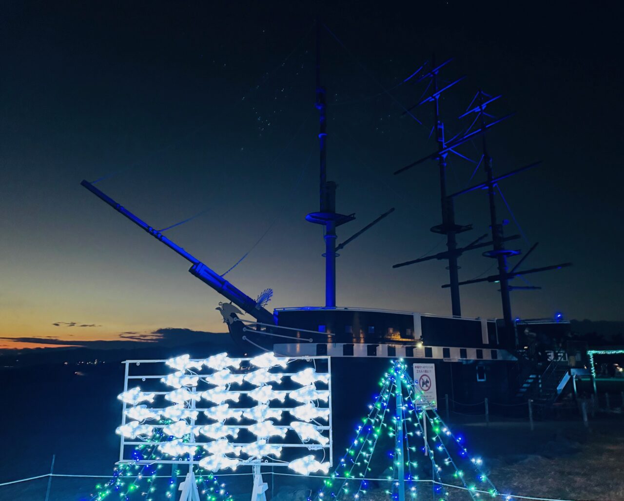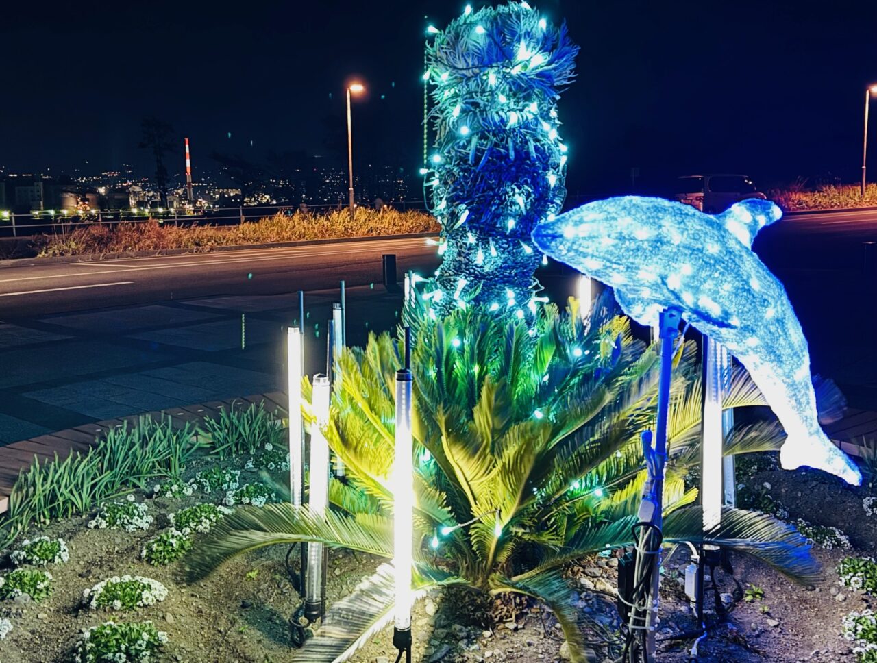 青いイルカのイルミネーションもあります。