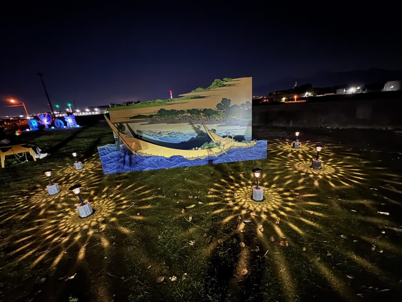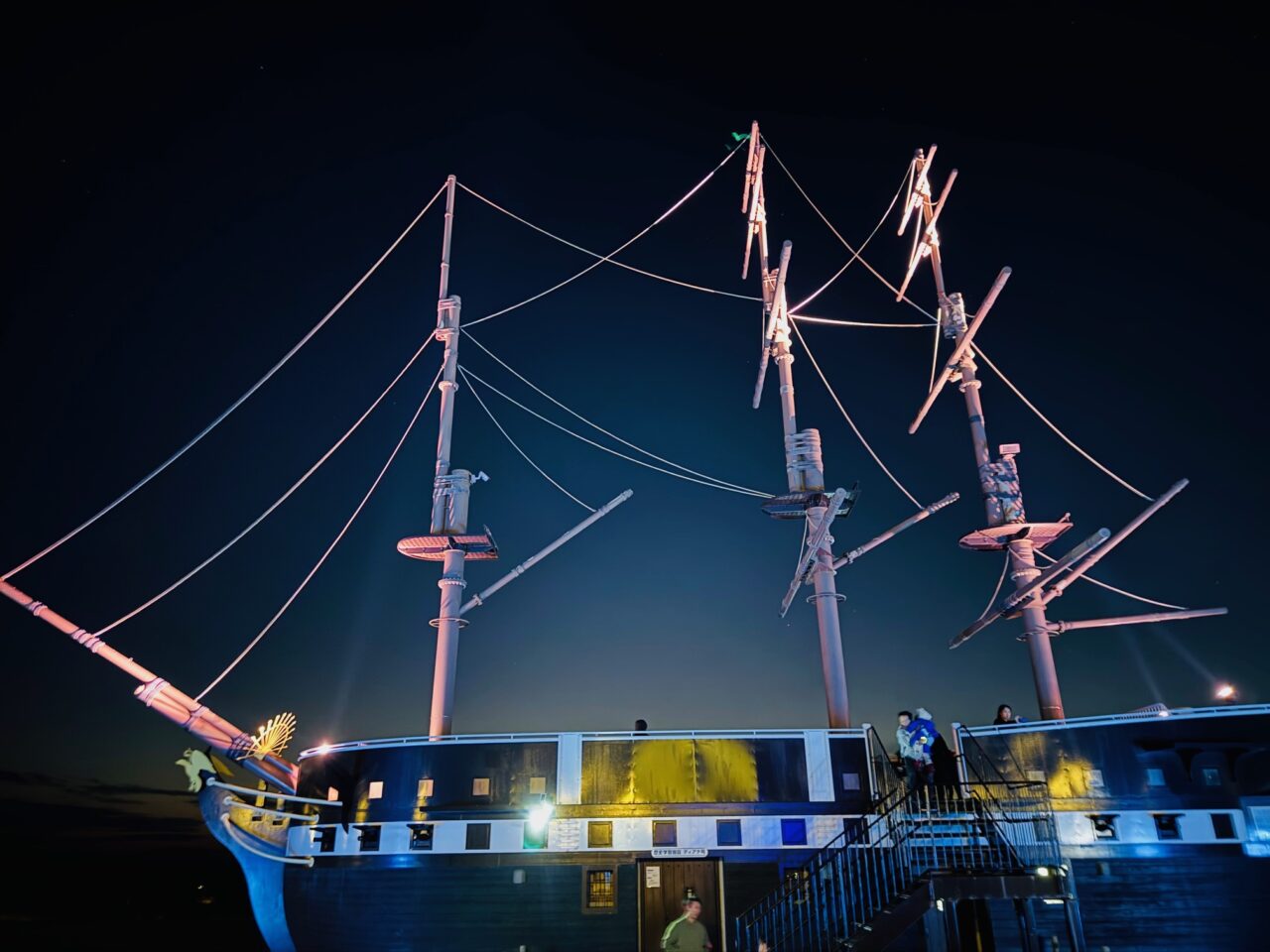 「歴史学習施設ディアナ号」も色とりどりにライトアップされています。