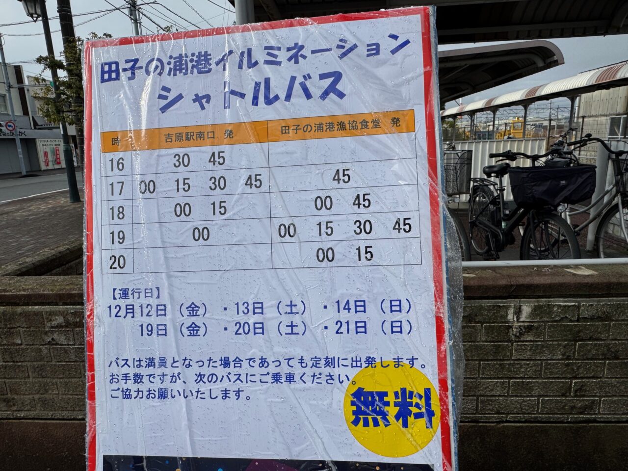 運行日は12月12日。13日・14日・19日・20日・21日の6日間です。
