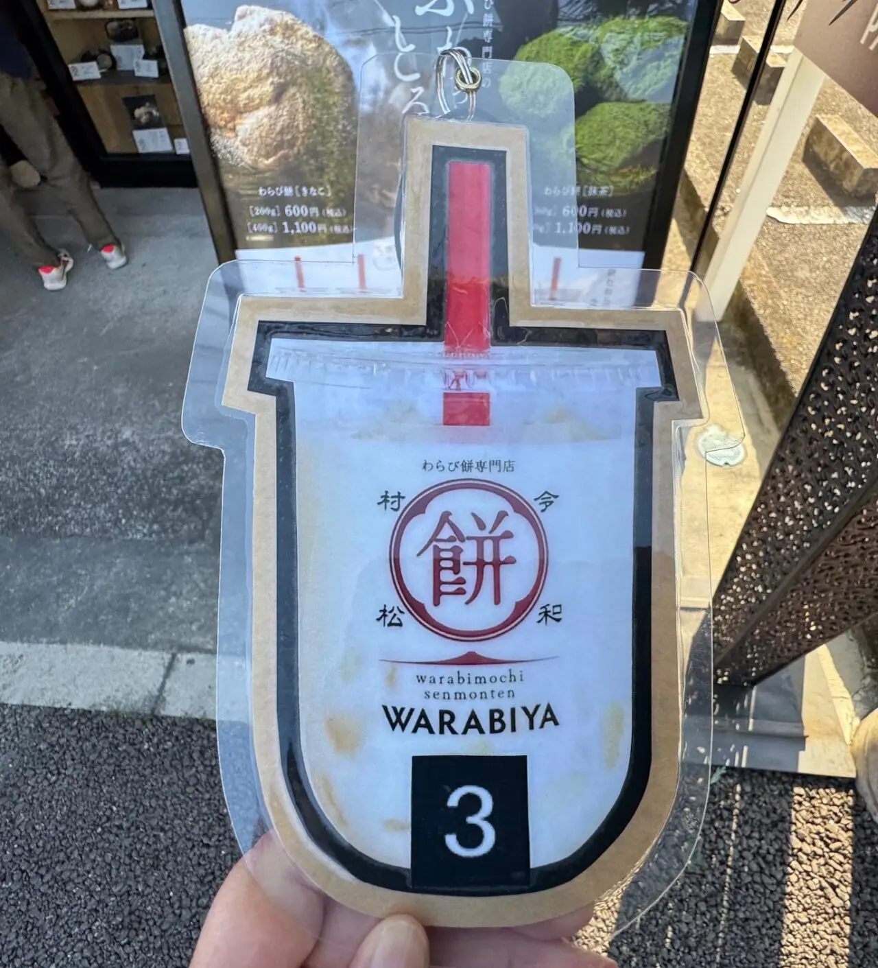 別日に「わらび餅」を求めて12時頃に再訪!7番目でしたので前回より待ち時間があり注文までに15分かかりました。わらび餅のみだったので受け渡し時間で待つことなく直ぐに受け取れました。