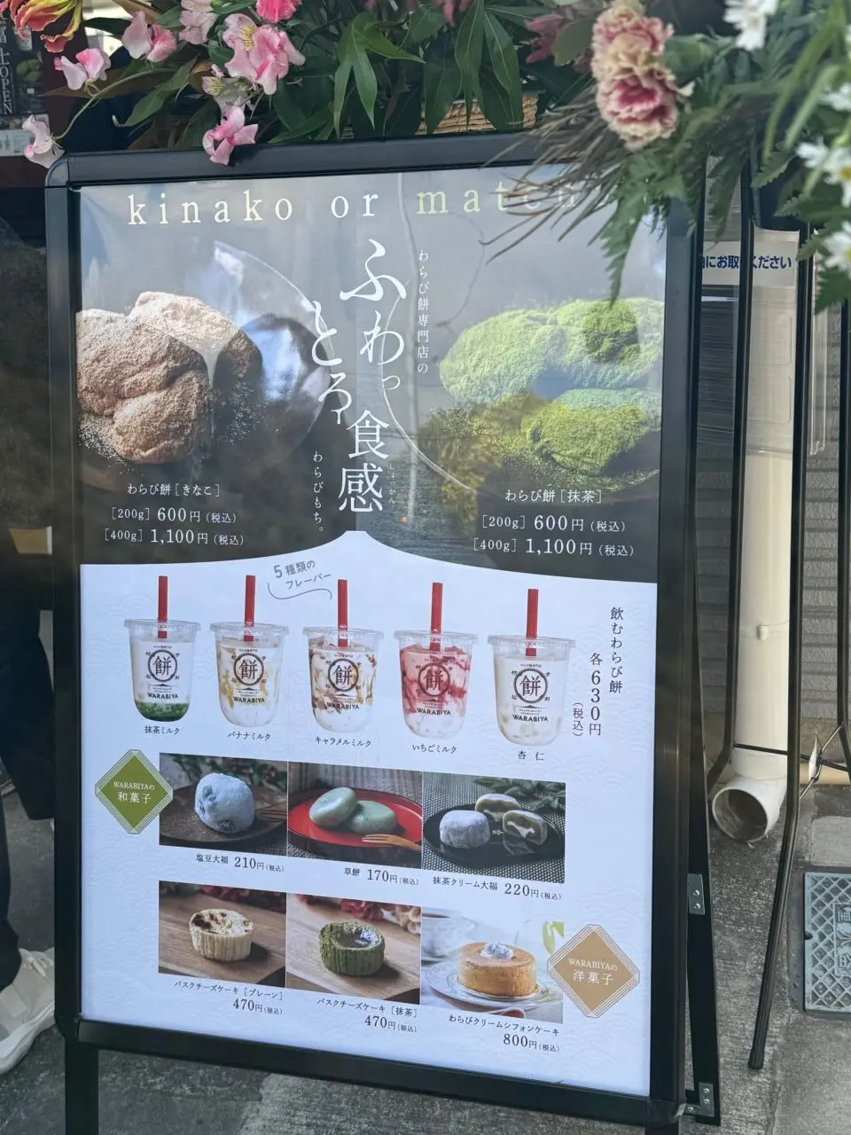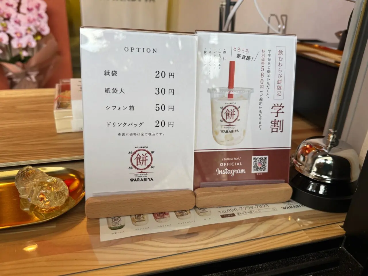 「飲むわらび餅」は学割があります。学生証を提示すると580円で購入できます。