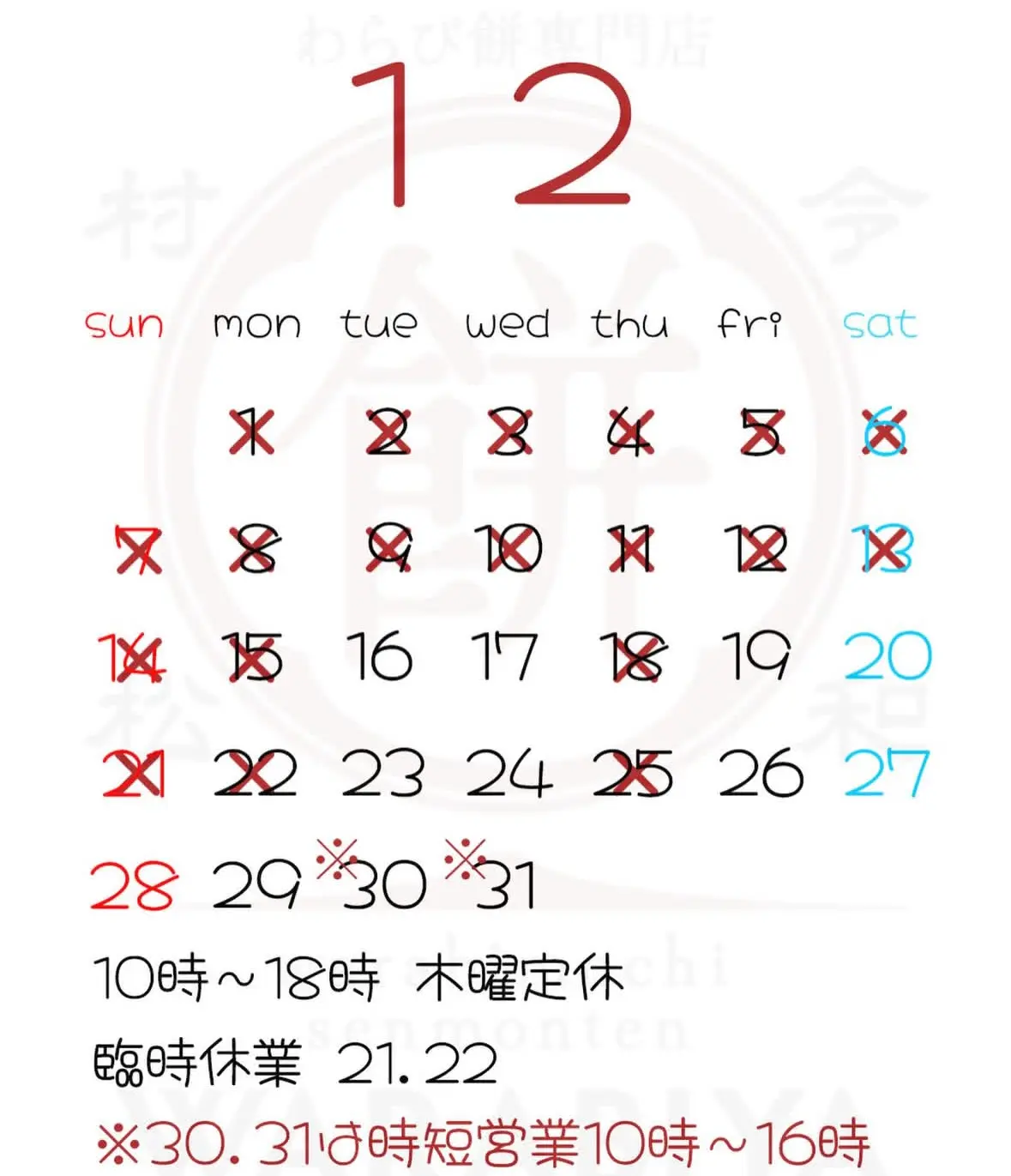 21日・22日は臨時休業です。30日・31日は時短営業です。