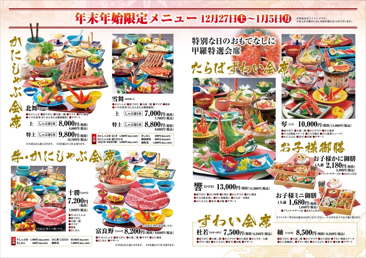 専門店のおいしい蟹を食べて、年越しやお正月を過ごしませんか?