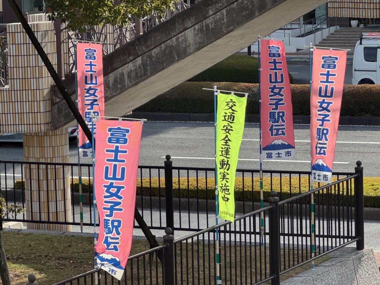 富士宮市、富士市の街中にはポスター、のぼり旗、横断幕が掲げられ「富士山女子駅伝」を歓迎している様子がうかがえますね。