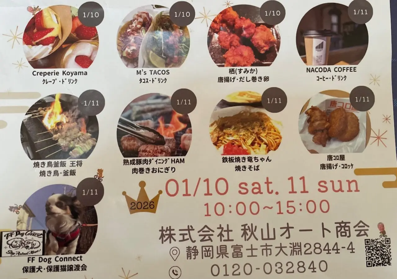 【富士市】「新春初売 秋フェス」が1月10日・11日に開催されます!キッチンカーが大集合!