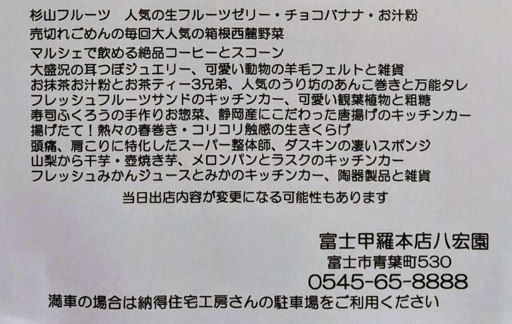 ※当日、出店内容や出店者が変更になる場合もあります。ご了承ください。