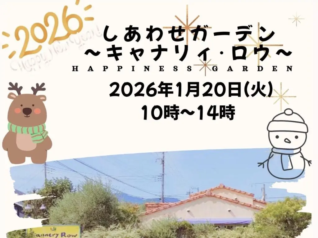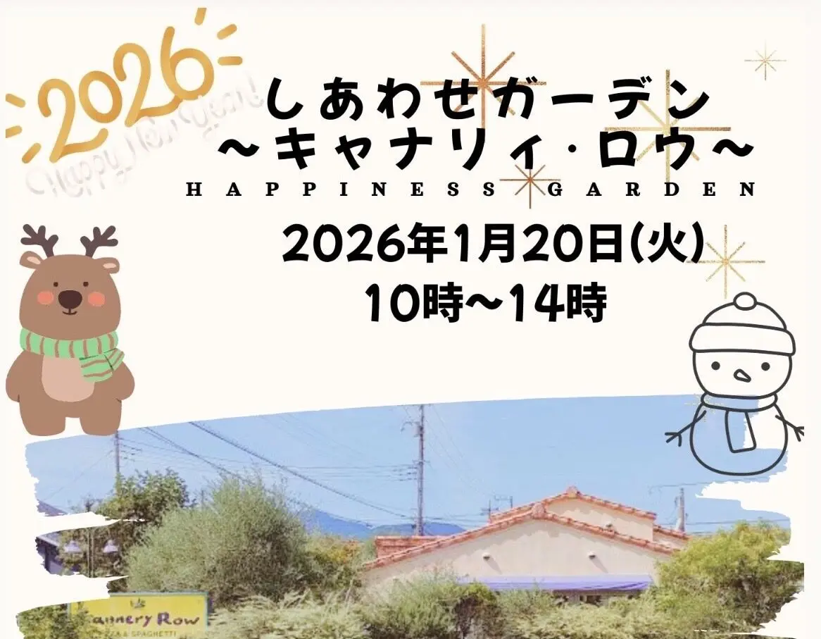 2026年1月20日(火)10:00~14:00「しあわせガーデン~キャナリィ・ロウ~」が開催されます。会場は「キャナリィ・ロウ富士青葉店」の駐車場です。