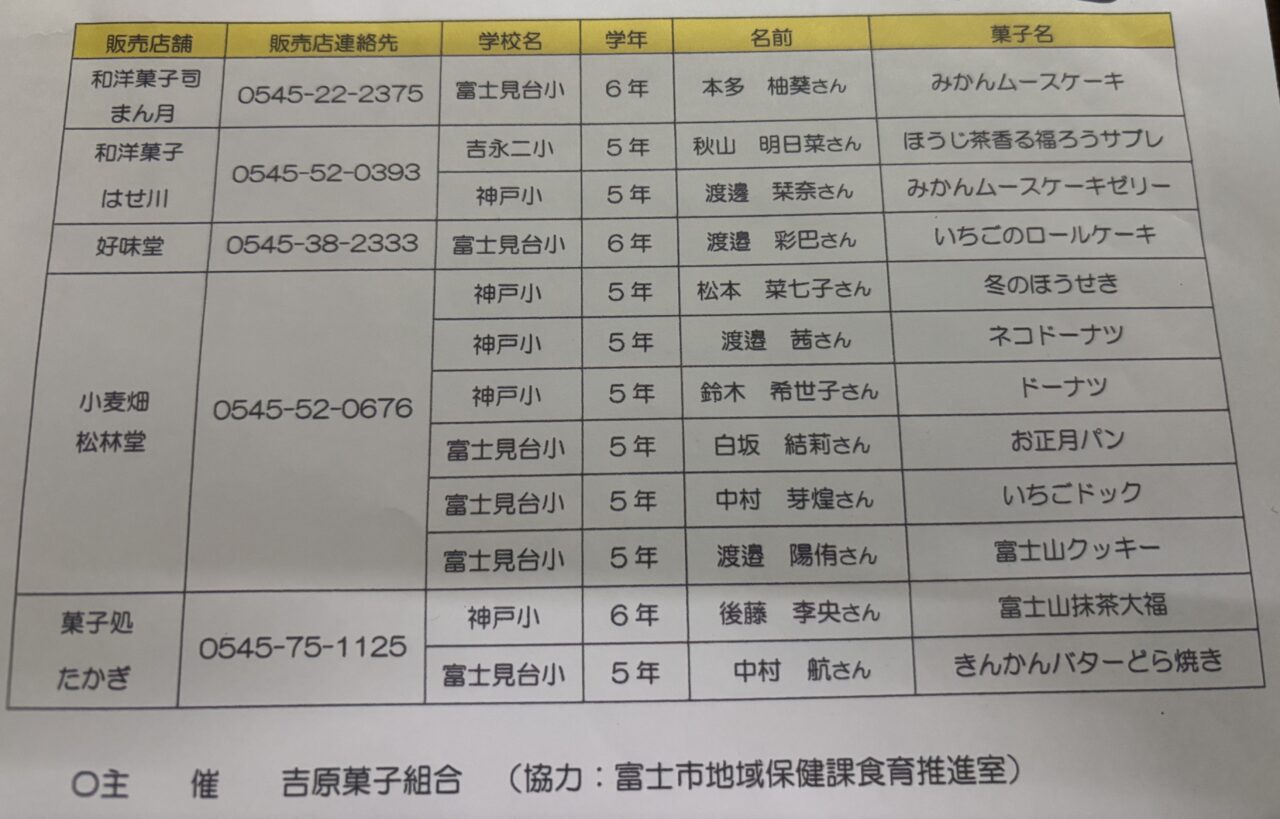 【富士市】小学生の考えたお菓子が商品化!1月17日・18日に販売されます!