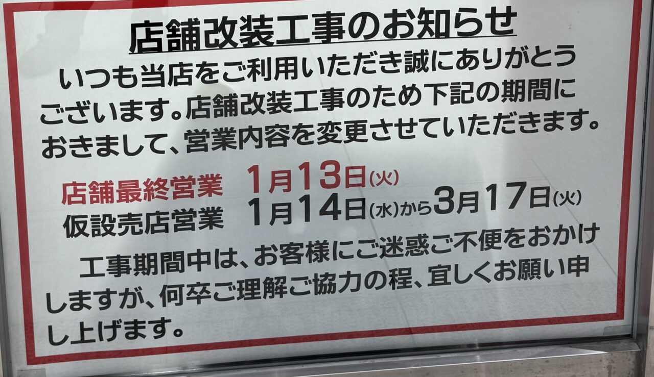 店舗最終営業は1月13日(火)だったようです。