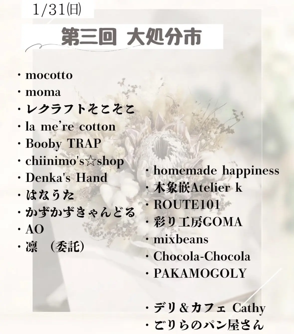 「第三回大処分市」1月31日(土)10:00~15:00