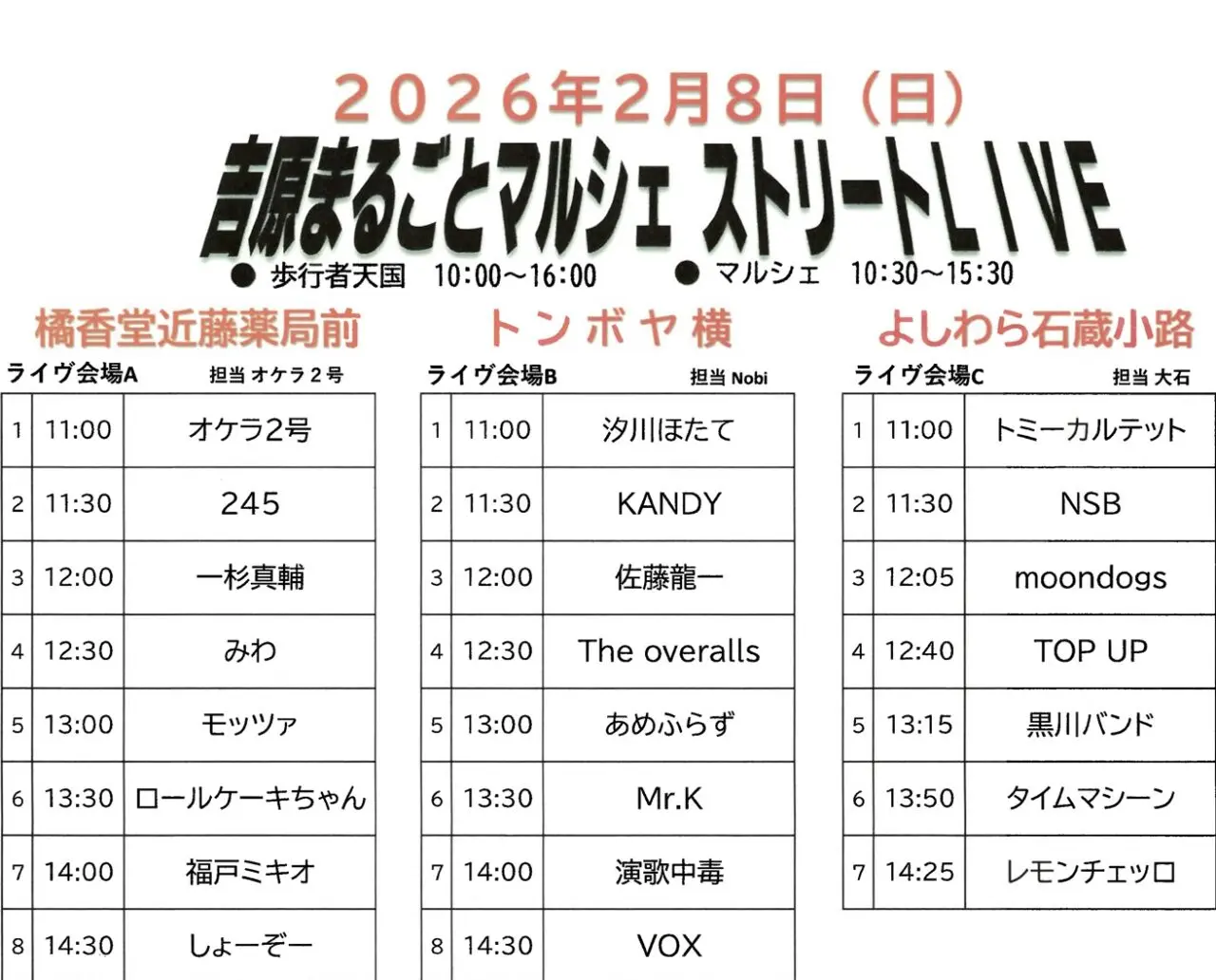 「吉原まるごとマルシェ ストリートLIVE」11:00〜15:00