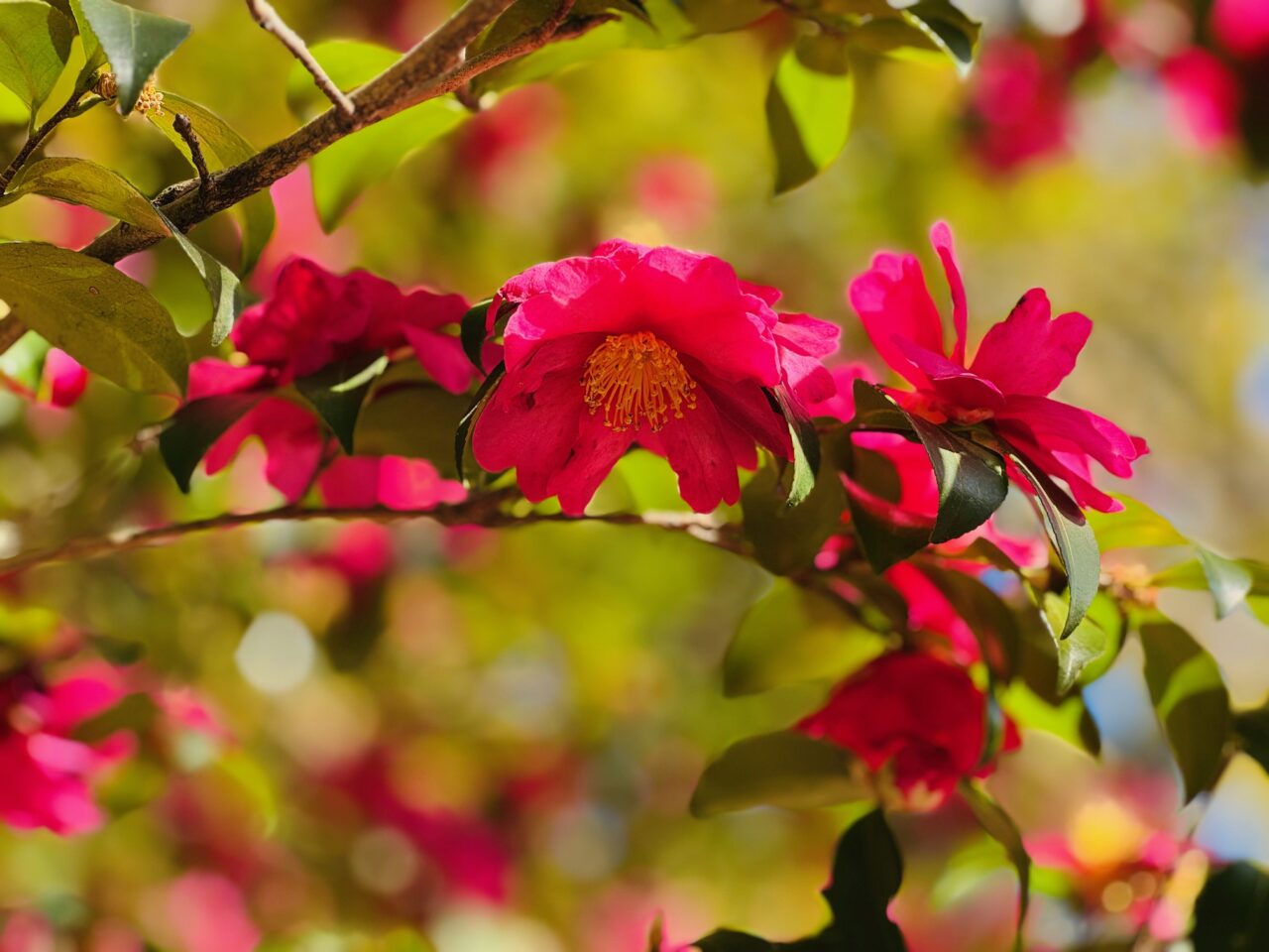 真っ赤な山茶花は見頃を迎えています。