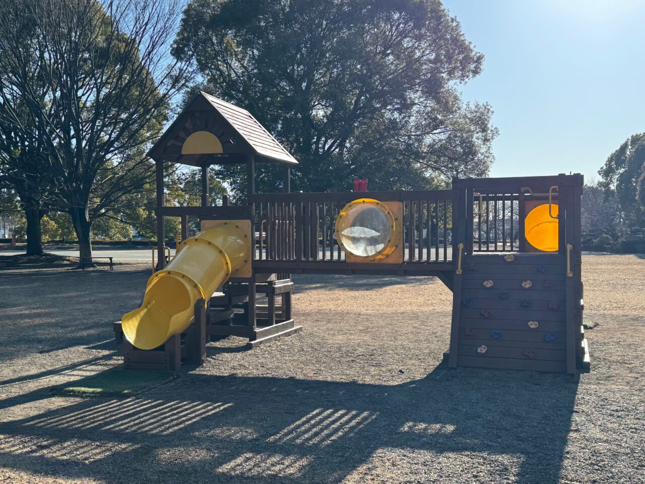 公園内には、お子さんが遊べる遊具もあります。広い敷地内でボール遊びもできます。