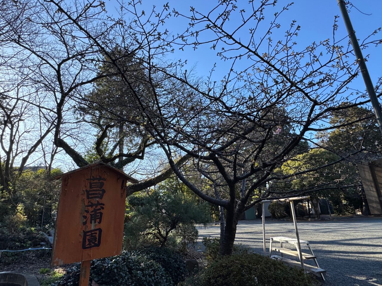 隣接する「米之宮浅間神社」の菖蒲園にも河津桜があります。1輪だけ開花していました。今後が楽しみです。米之宮浅間神社はソメイヨシノが満開になるとお花見に訪れる人も多く人気の場所です。