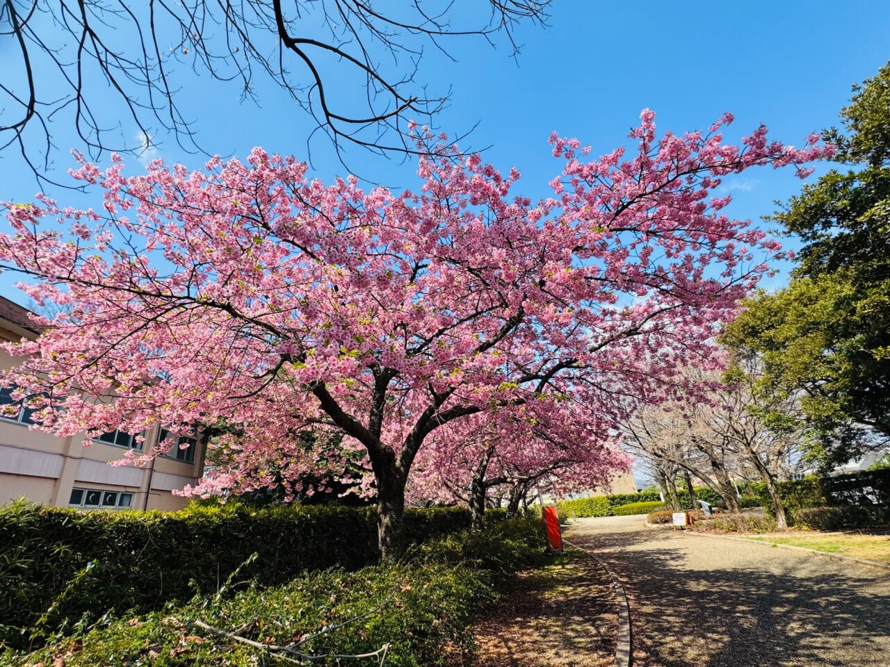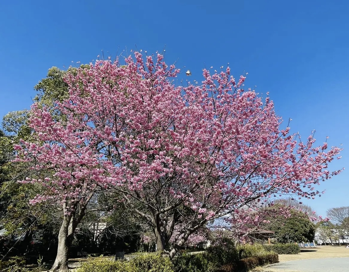 【富士市】米之宮公園の河津桜が咲き始めました。2月9日現在の開花情報です。