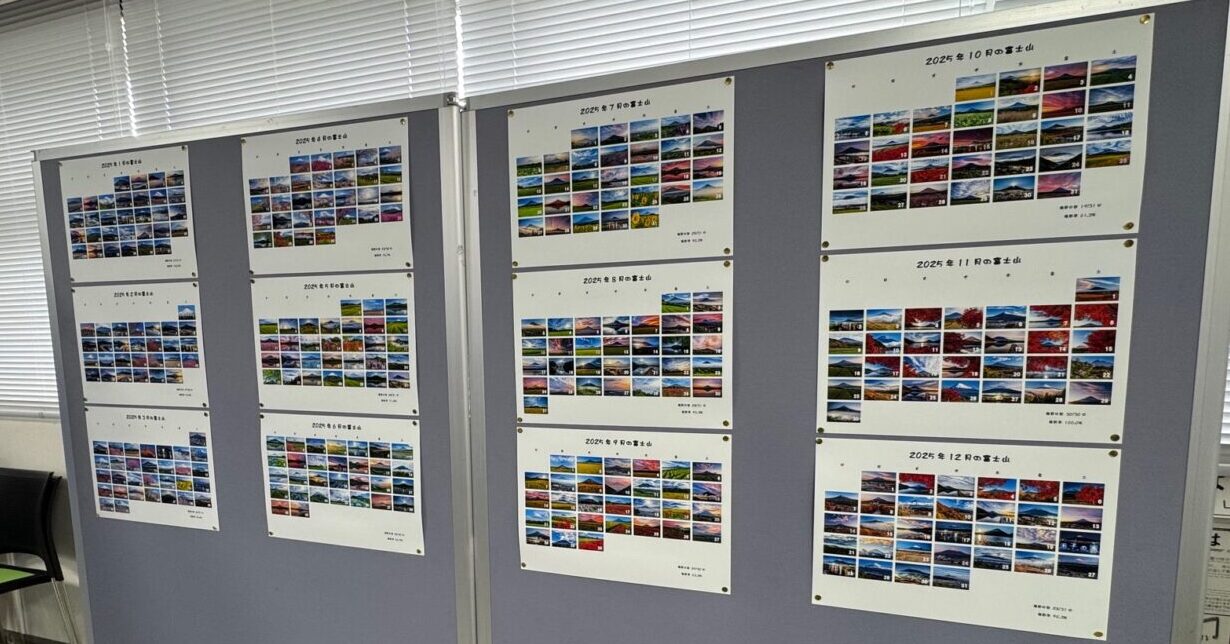 月別富士山展示パネルは宮崎さんがSNSに投稿した富士山写真を月別にカレンダー形式で展示されています。