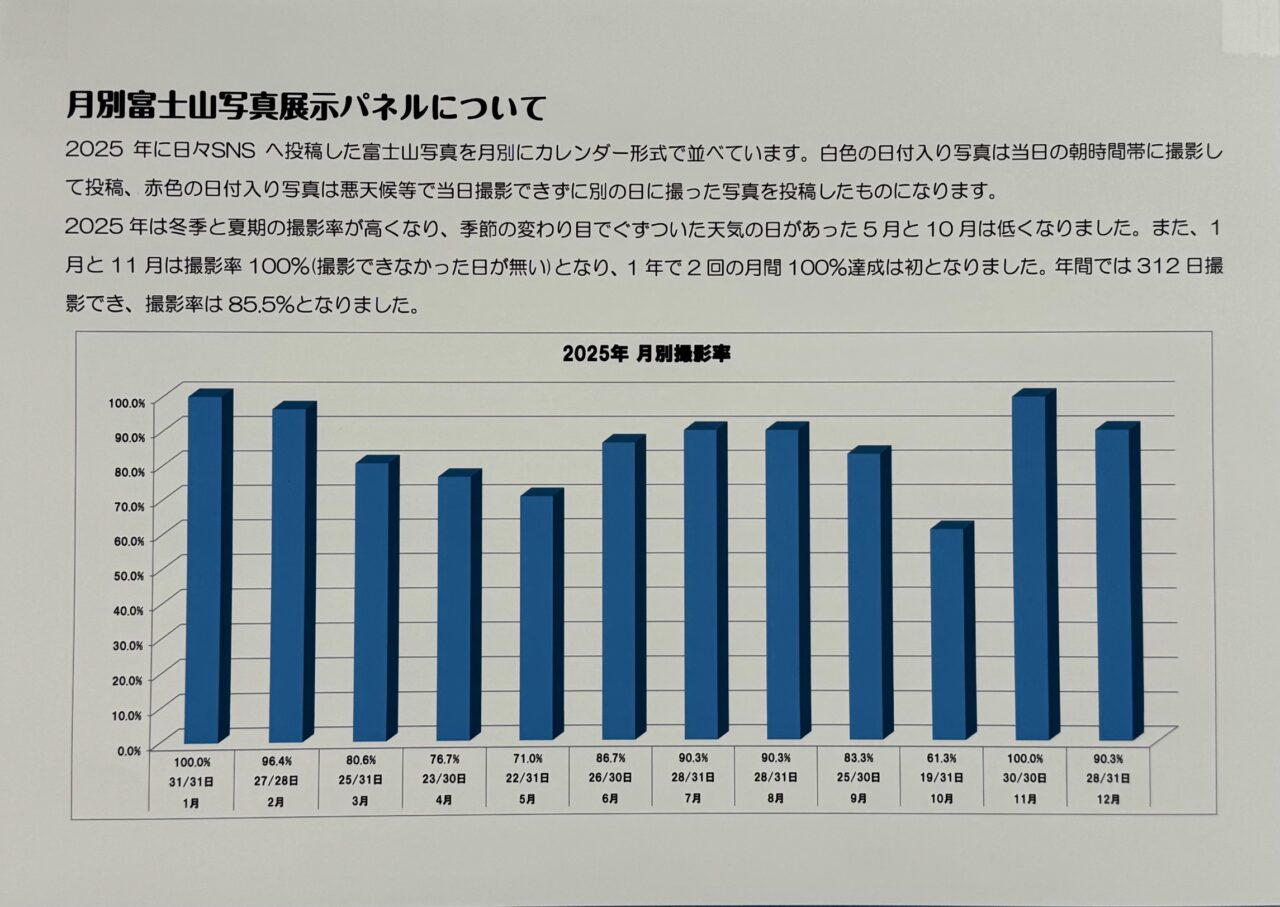 2025年の1月と11月は撮影率100%(撮影できなかった日が無い)となり、1年で2回の月間100%達成は初となり、年間では312日撮影ができたそうです。