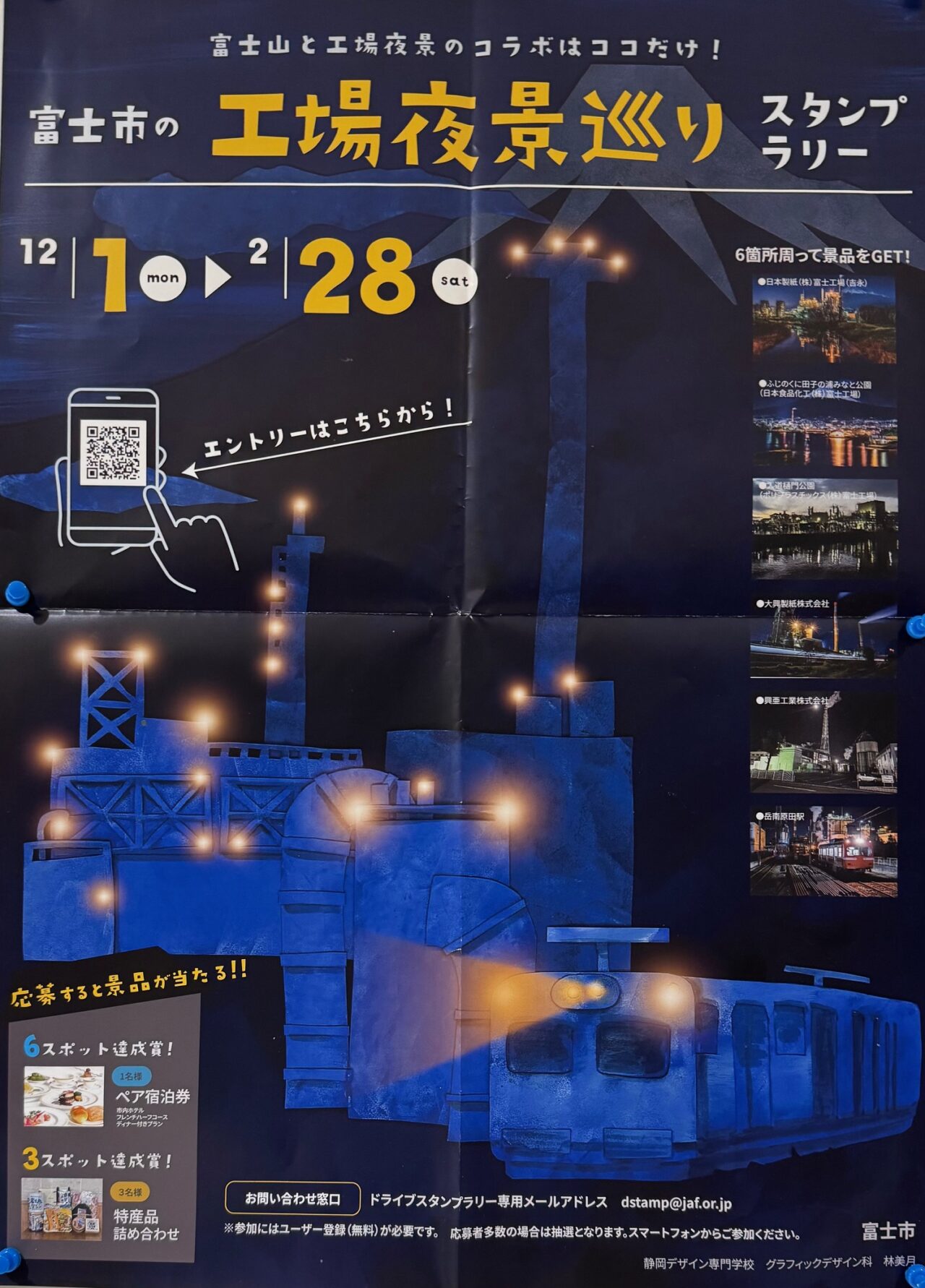 現在、PRイベントとして2025年12月1日~2026年2月28日まで「富士市の工場夜景巡りスタンプラリー」が開催されています。