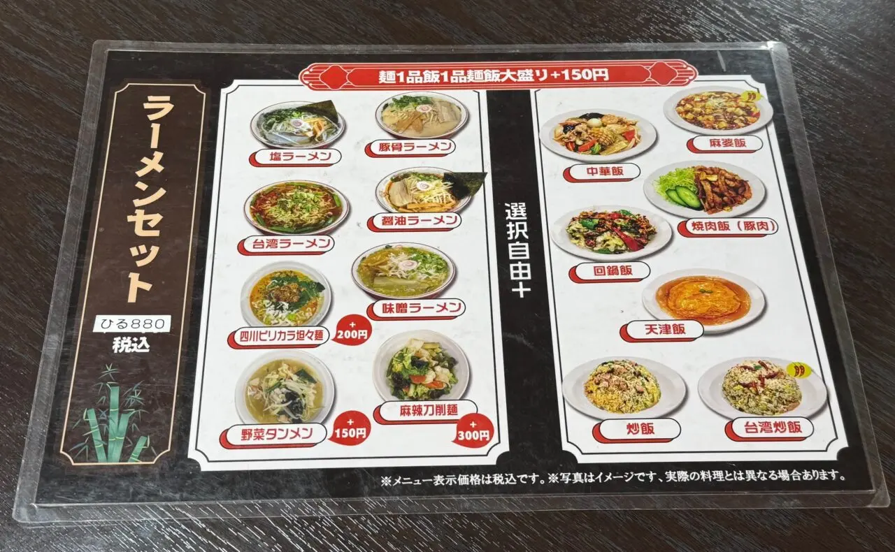「ラーメンセット」800円(税込) 各種ラーメン+ご飯もの
