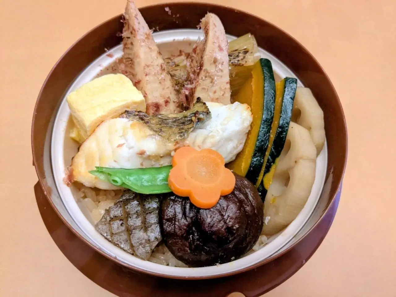 鯛の炊込みご飯と鯛や卵焼きなど10種類の具が入ってます
