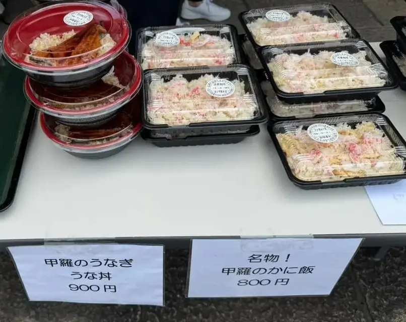 「かに飯」800円「うな丼」900円「かにクリームコロッケ」200円「海老マヨネーズ (3個)」 500円