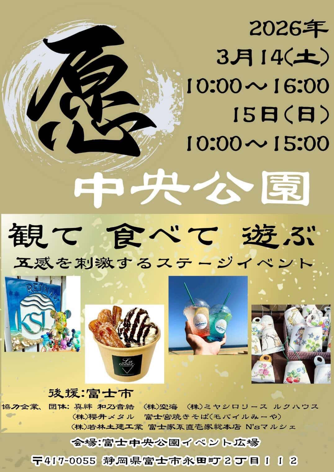 2026年3月14日・15日は富士市中央公園にて「観て食べて遊ぶ五感を刺激するステージイベント」がコンセプトの「愿(ゲン)」が開催されます。