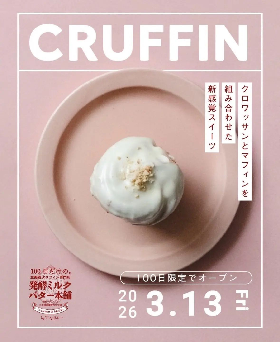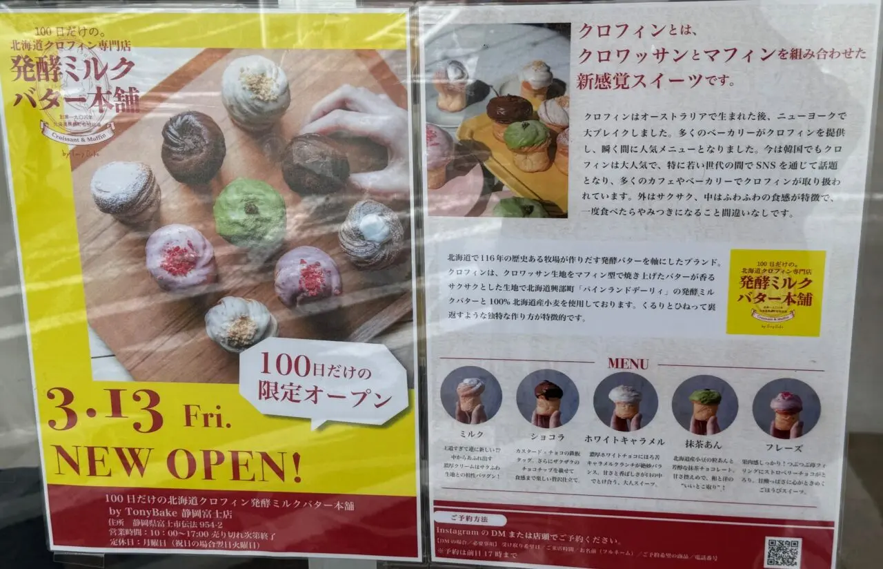 「100日だけのクロワッサンTonyBake」と同じオーナーさんが、2026年3月13日(金)10:00に新しいお店「100日だけの北海道クロフィン発酵ミルクバター本舗 by TonyBake 静岡富士店」をオープンされます!