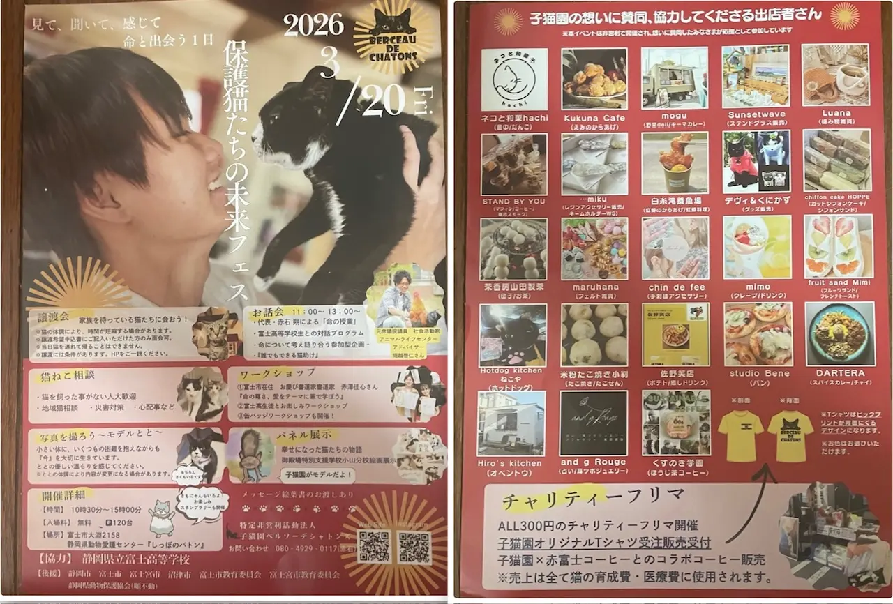 そして今回静岡県立富士高等学校が全面協力してくださるという本当に異例で心強いご縁をいただきました。「命」を大切に思う気持ちに学校という大きな力が背中を押してくれたことそれは大きな希望です。(子猫園HPより)